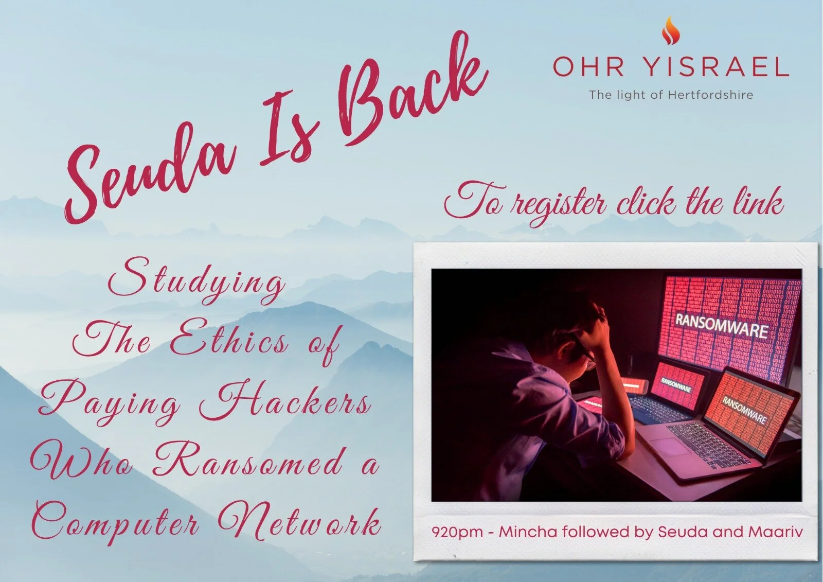 What’s on Seuda is Back!9:25pm - Mincha followed by Seuda and Maariv Daf Yomi 30 mins before Mincha Back to all events >